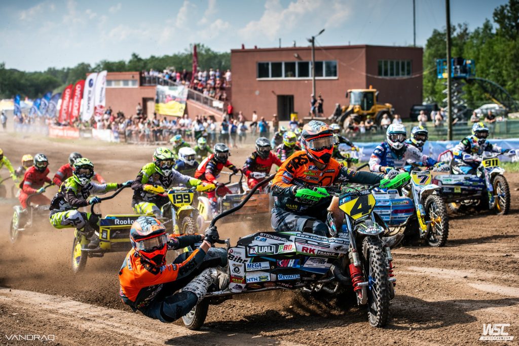 Le week end dernier s’est déroulé la 7 eme épreuve du mondial en Estonie,une piste très technique, avec de nombreux sauts.Un circuit que Valentin apprécie tout particulièrement pour y avoir déja remporté 3 manches ces dernières années et gagné le Grand Prix en 2017.Tout a bien commençé le samedi pour les qualifIcations,hyper motivé après la victoire du Grand Prix de France le week end précédent,l’équipage souhaite faire un bon coup ce week end.Le TGM réalise le meilleur temps des essais libres,prend la pôle position aux essais chronométrés devant le champion du monde en titre Vanluchene.Lors des qualifications du groupe B , le TGM réalise le holeshot parfait, une seconde plus vite que les autres concurrents à chaque tour ,le sidecar n°4 s’envole vers la victoire des qualifications avec 12 secondes d’avance à l’arrivée.Un samedi sans faute qui laisse présager de bonnes choses pour dimanche.